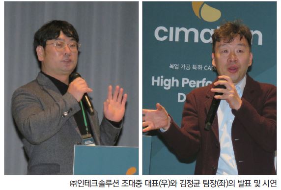 이어진 Customer’s Story 발표 시간에서는 ㈜인테크솔루션 조대중 대표와 김정균 팀장이 ‘Cimatron 적용 후 개선 사례 및 목업 생산 스킬 제안’을 주제로 Cimatron을 기반으로 가공 영역과 공정을 표준화하여 황삭부터 잔삭까지 원클릭 가공 환경을 구현한 사례를 소개하면서 목업 생산 효율 향상뿐만 아니라 현장 내 품질 일관성을 확보한 표준화된 가공 프로세스 구축 경험을 공유하였다.