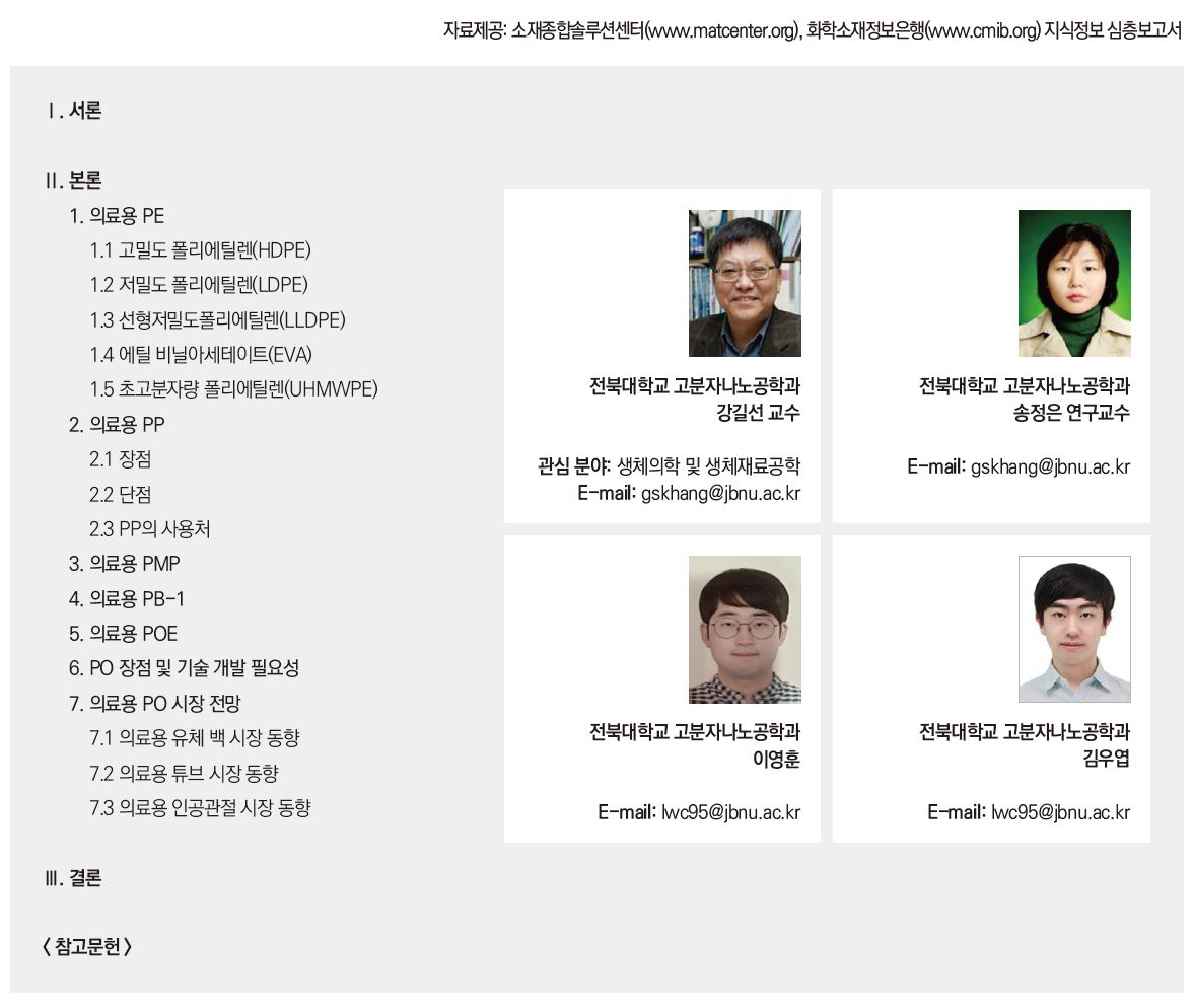 PO는 다양한 용도의 제품으로 제작하기 용이하며 낮은 밀도, 손쉬운 재활용성, 다양한 공정성 등 우수한 비용/성능적 가치를 지니고 있다. 의료용 임플란트, 의료기기 및 약재 포장지 등의 생산 시 PO 제품이 적용되며 바이알, 병 및 주사기, 의료용 튜브, 혈액백 및 유체백 등이 PO의 대표적인 사용처이다.5 [그림 2]