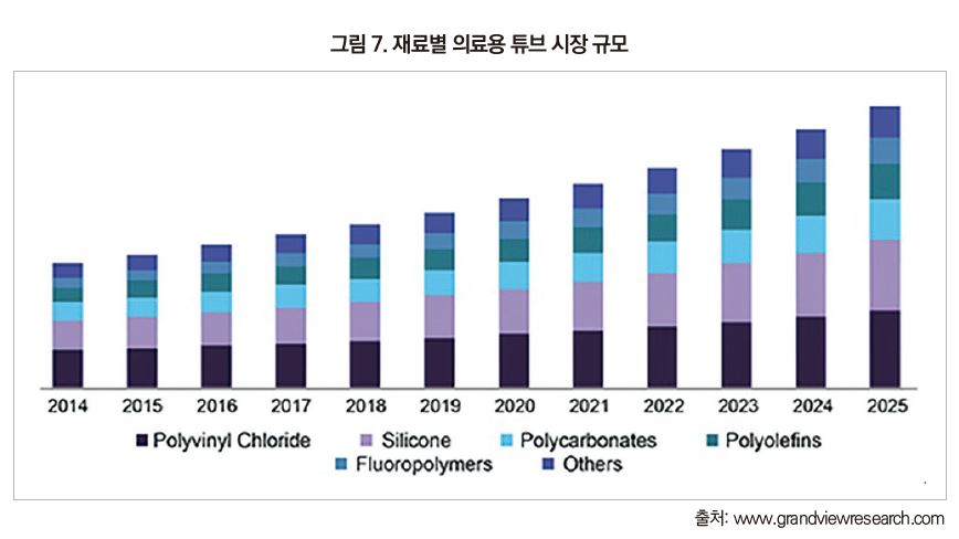 의료용 튜브 시장은 2020년에 671억 달러(한화 약 82조 500억 원)에서 2025년 1,037억 달러(한화 약 126조 8,000억 원)로 성장하여 약 9.1%의 연평균 성장률을 기록할 것으로 전망된다.