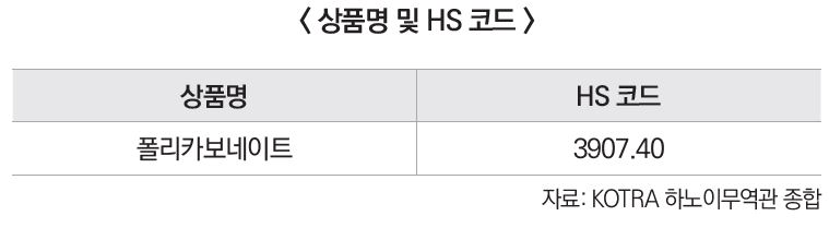 한편, 현재 베트남은 폴리카보네이트 수지 등 원료 대부분을 수입에 의존하고 있다.