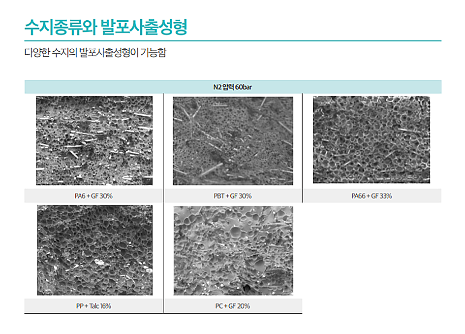 지난 몇 년간 수많은 시험 사출을 통해 노하우를 축적한 동사는 고객사의 금형이나 수지에 따라 최적화된 조건을 제안하며 기술력을 켜켜이 쌓아왔고, 최근 슈퍼폼에서 한 단계 업그레이드된 새로운 미세물리발포성형기술인 ‘클린폼(Clean-Foam: 하이브리드 물리발포)’을 선보이며 관련 업계에 새바람을 몰고 왔다.