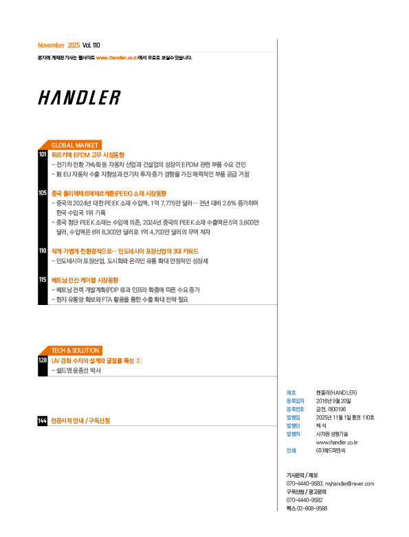 플라스틱 · 금형 전문지 핸들러 2025년 11월호 발간