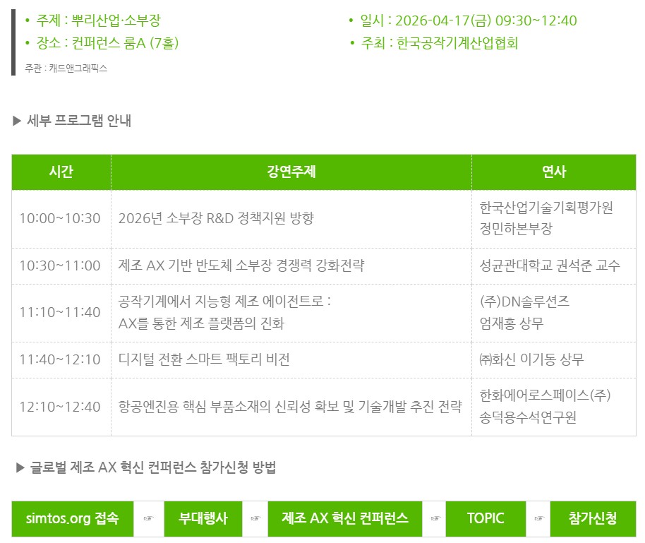 - 4월 17일 SIMTOS 2026 제조 AX 혁신 컨퍼런스 'TOPIC 1'