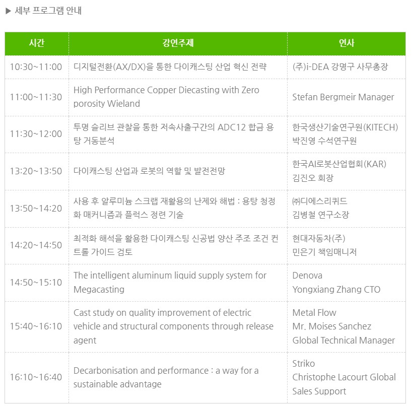 - 메가캐스팅·탈탄소·고성능 소재까지 미래 전략을 확인할 기회