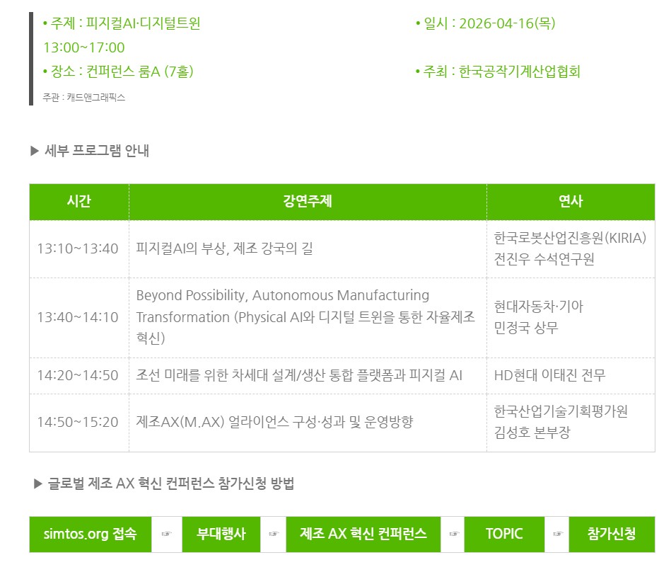 [SIMTOS 2026 컨퍼런스] AI 자율제조 실현을 위한 디지털 트윈과 피지컬 AI의 융합