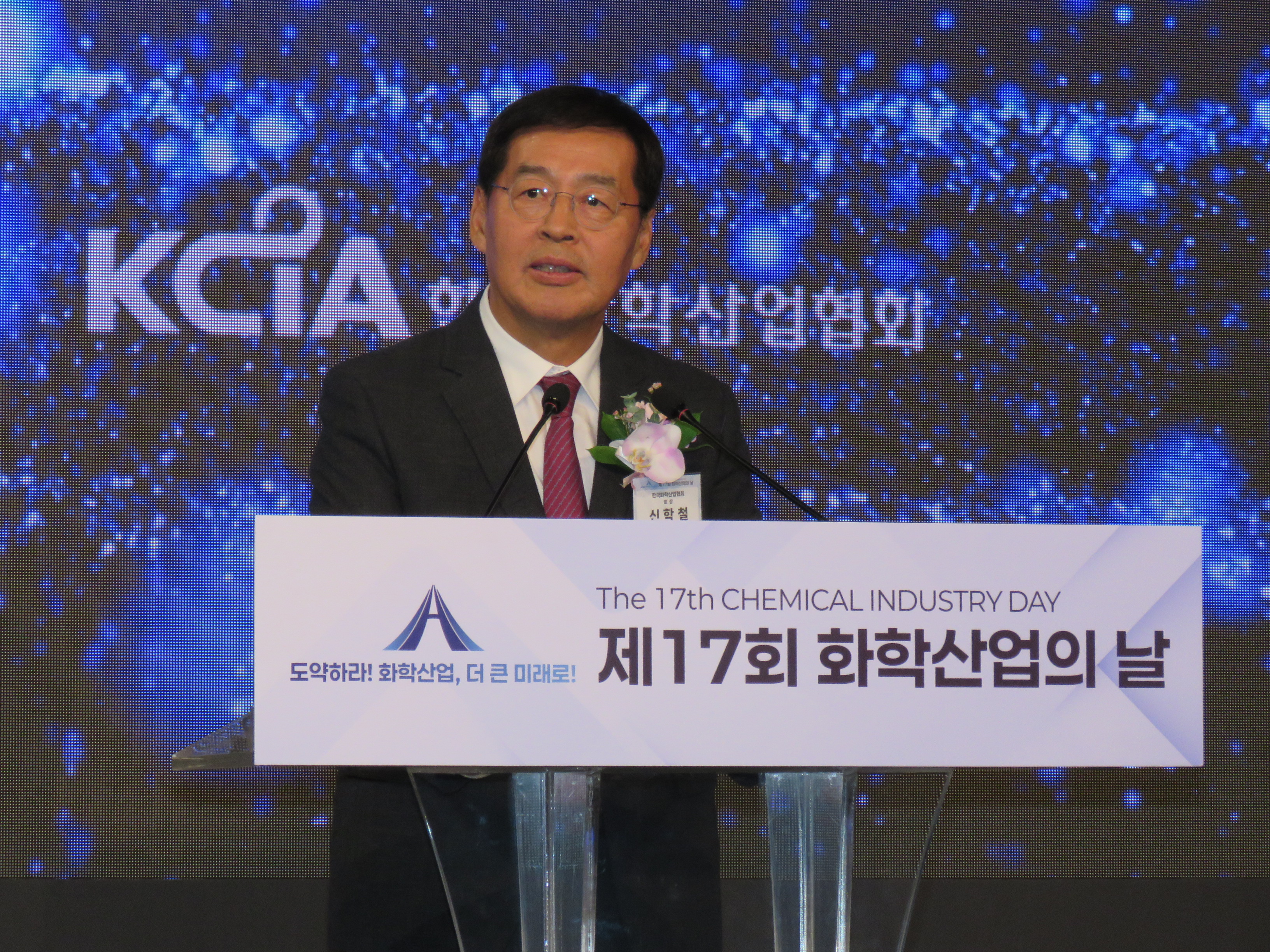 기념사를 하고 있는 신학철 한국화학산업협회장