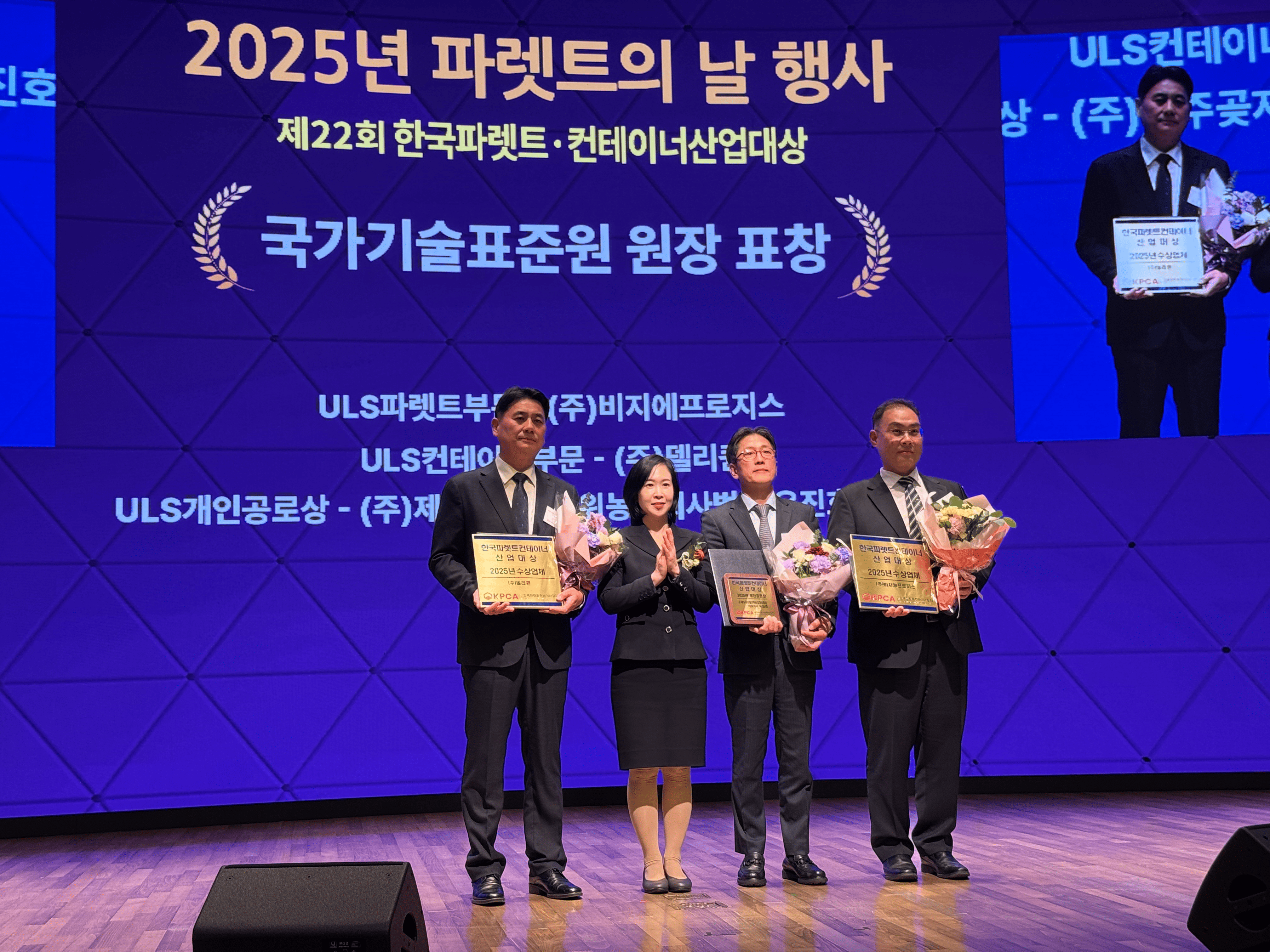 국가기술표준원장 표창은 ULS 파렛트 부문에 ㈜비지에프로지스가 전국 25개 센터에서 T-11형 파렛트를 도입하여 운영하고 물류 품질 향상과 고객 만족을 위해 지속적으로 노력한 공로로 수상했다. ULS 컨테이너 부문에 ㈜델리퀸이 종이 박스를 대체한 표준화된 물류기기를 도입하여 유닛로드시스템을 확대하여 산업 내 표준화 확산을 위해 기여한 바로 수상했다. ULS 개인공로 부문에 ㈜제주곶자왈키위농업회사법인 유진호 대표이사가 농가별 물류기기를 풀링업체의 물류기기로 전환하여 업체 간 규격의 상이함으로 발생하던 작업 방식의 효율성 증대에 크게 기여한 공로를 인정받아 수상했다.