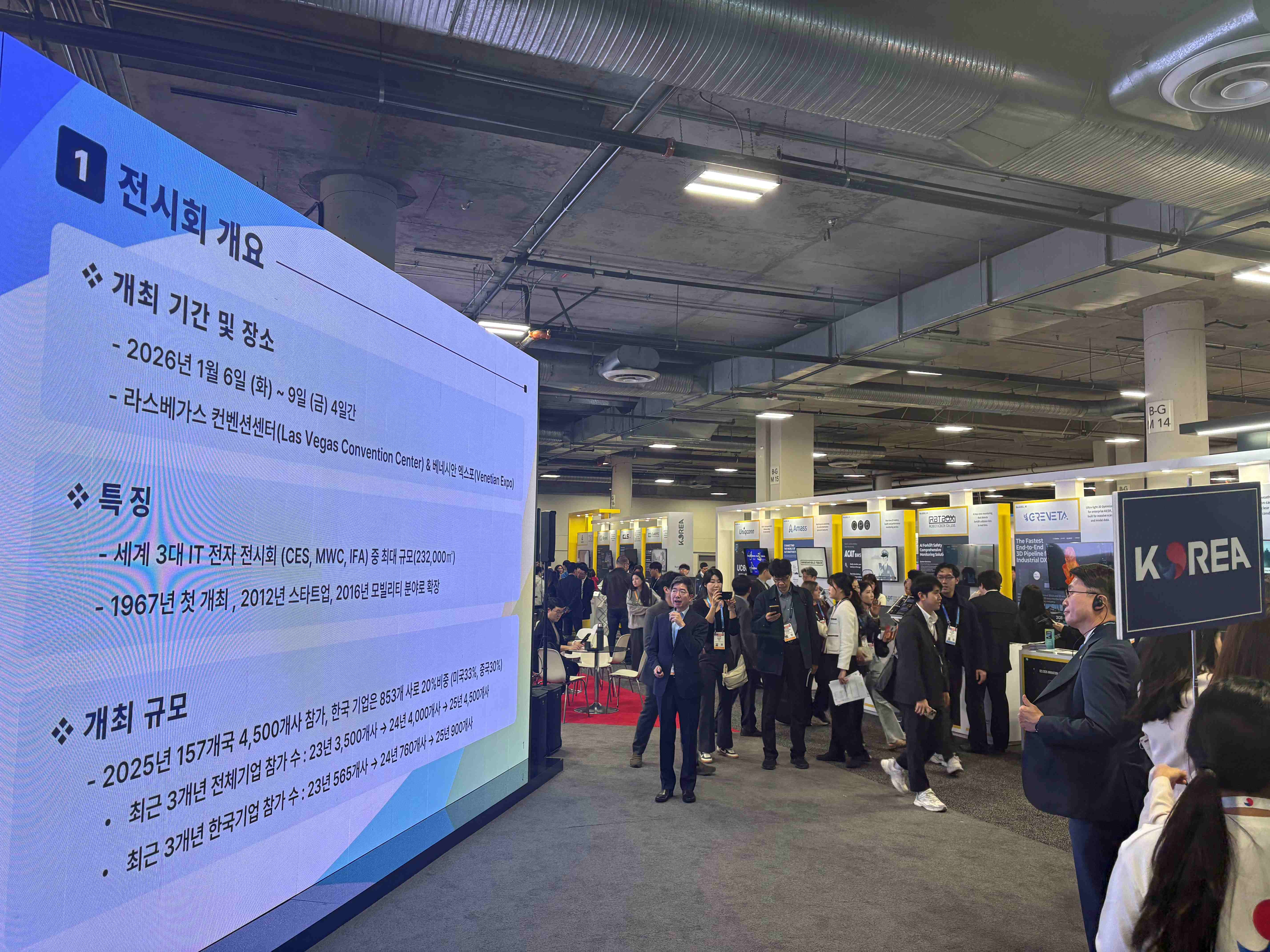 산업통상부(이하 산업부, 장관 김정관), 대한무역투자진흥공사(이하 코트라, 사장 강경성) 등 38개 기관이 함께 구성한 통합한국관에도 역대 최대 규모인 470개사가 참가, CES 전체적으로는 1,000여 개 한국기업이 부스를 설치해 신기술을 뽐냈다.