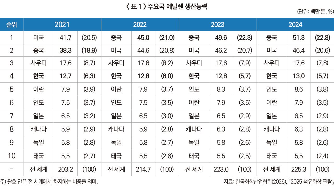 3) 한국화학산업협회(2025), 「2025 석유화학 편람」.