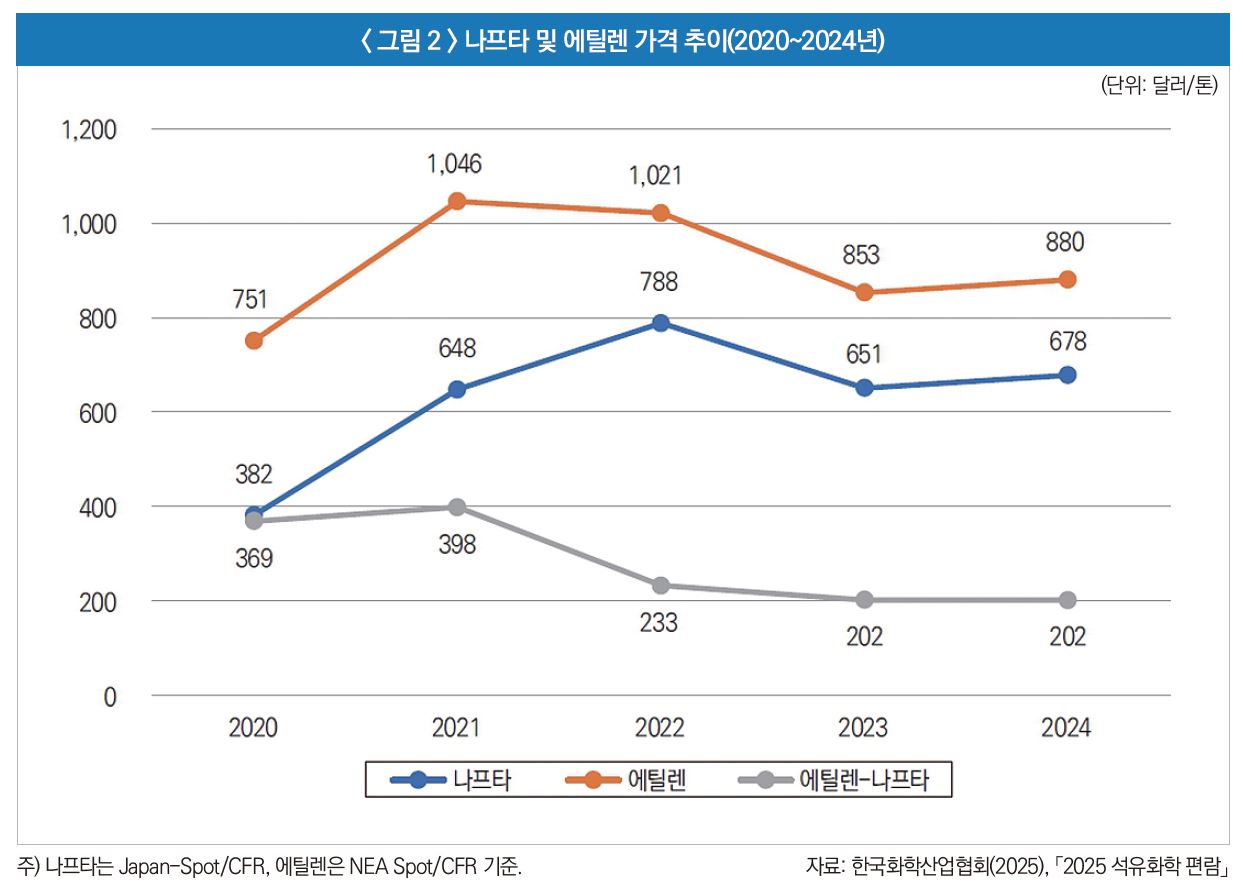 2) 한국화학산업협회(2025), 「2025 석유화학 편람」.