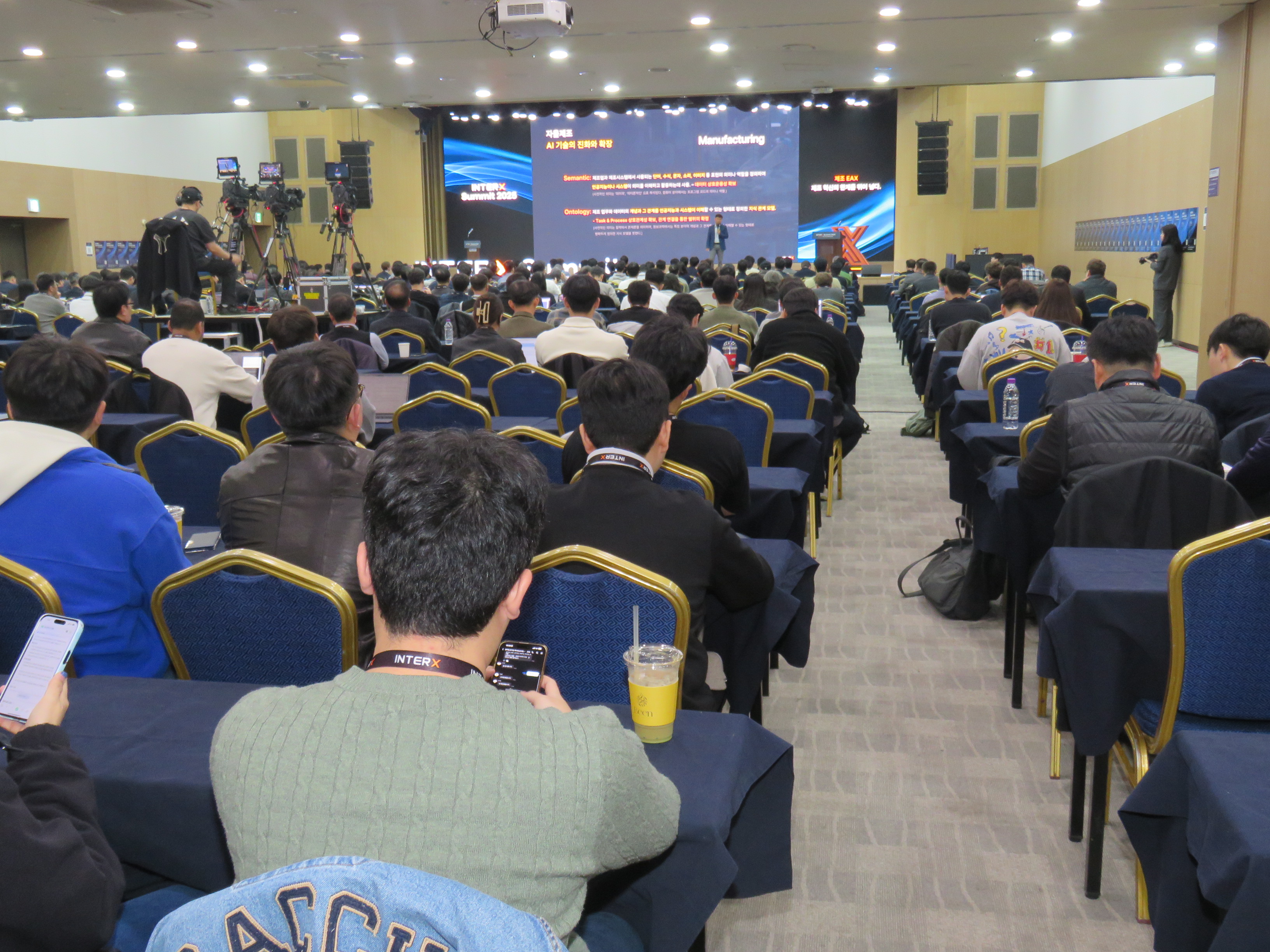 세션 2에서는 인터엑스의 AX 기반 자율제조를 실현하는 AI 팩토리 솔루션이 소개하며, 실제 주요 고객사 적용 사례 발표가 함께 진행됐다. 대덕전자는 인쇄회로기판(PCB) 공정에서의 AI 예측 시스템 도입 필요성과 추진 전략을, 대상은 바이오 공정 자율화 사례를 발표했다.